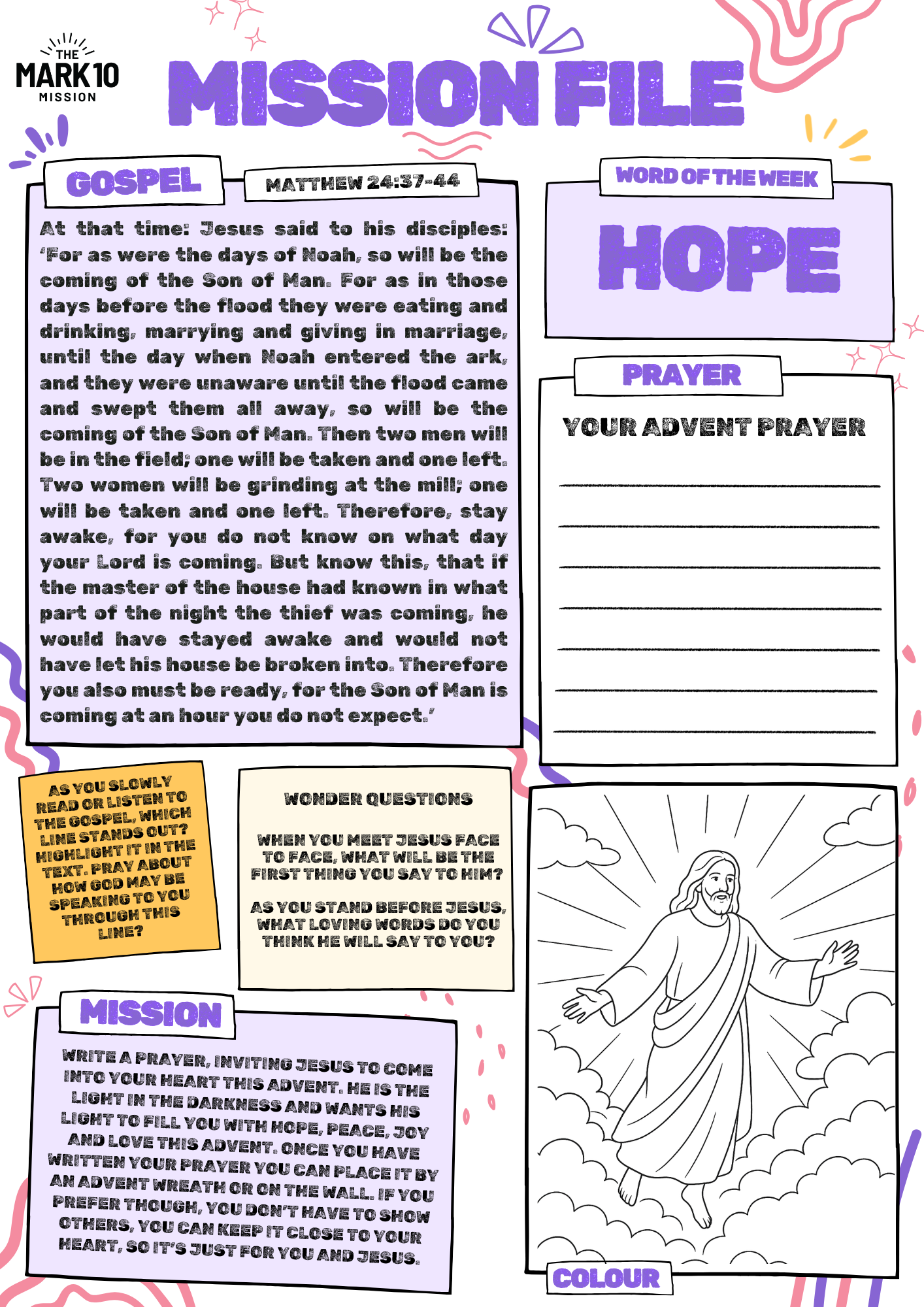 They could collect them in their prayer journal as the journey through the year with Jesus